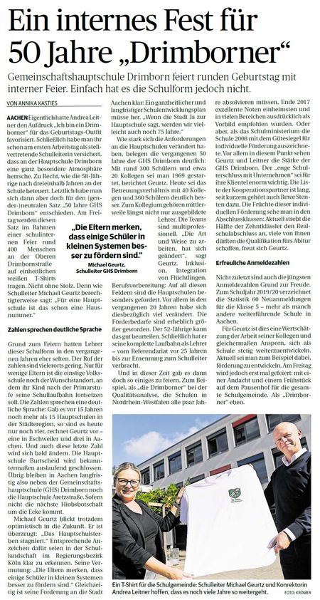 Stefanie Grisard-Hölscher schreibt zu „Ein internes Fest für 50 Jahre Drimborner“: