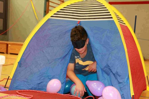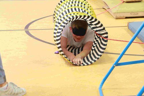 Beim Blindenparcours haben natürlich unsere SchülerInnen viel Spaß.