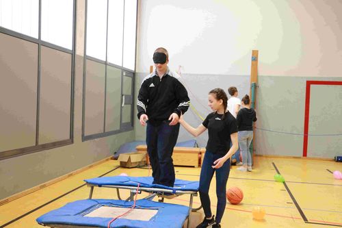 Sport, Spiel und Spaß gehören an der GHS Drimborn zusammen. Der Blindenparcours gehört dazu. Um ihn zu durchlaufen braucht man Ausdauer und Abenteuerlust.
