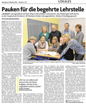 Amento-Betreuer und SchülerInnen treffen sich nach dem Unterricht in der Schule. Unsere Sozialpädagogin, Frau Knur, ist organisatorischer Ansprechpartner für dieses Projekt.